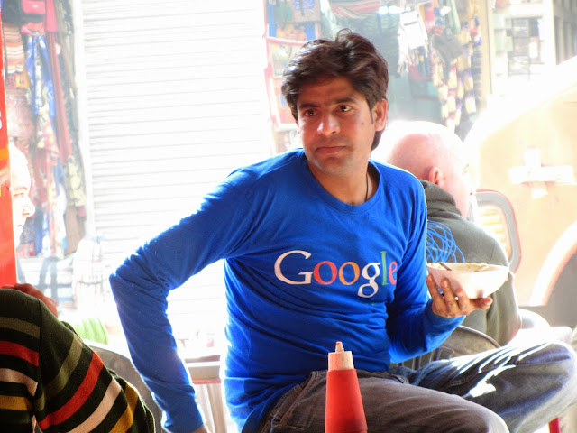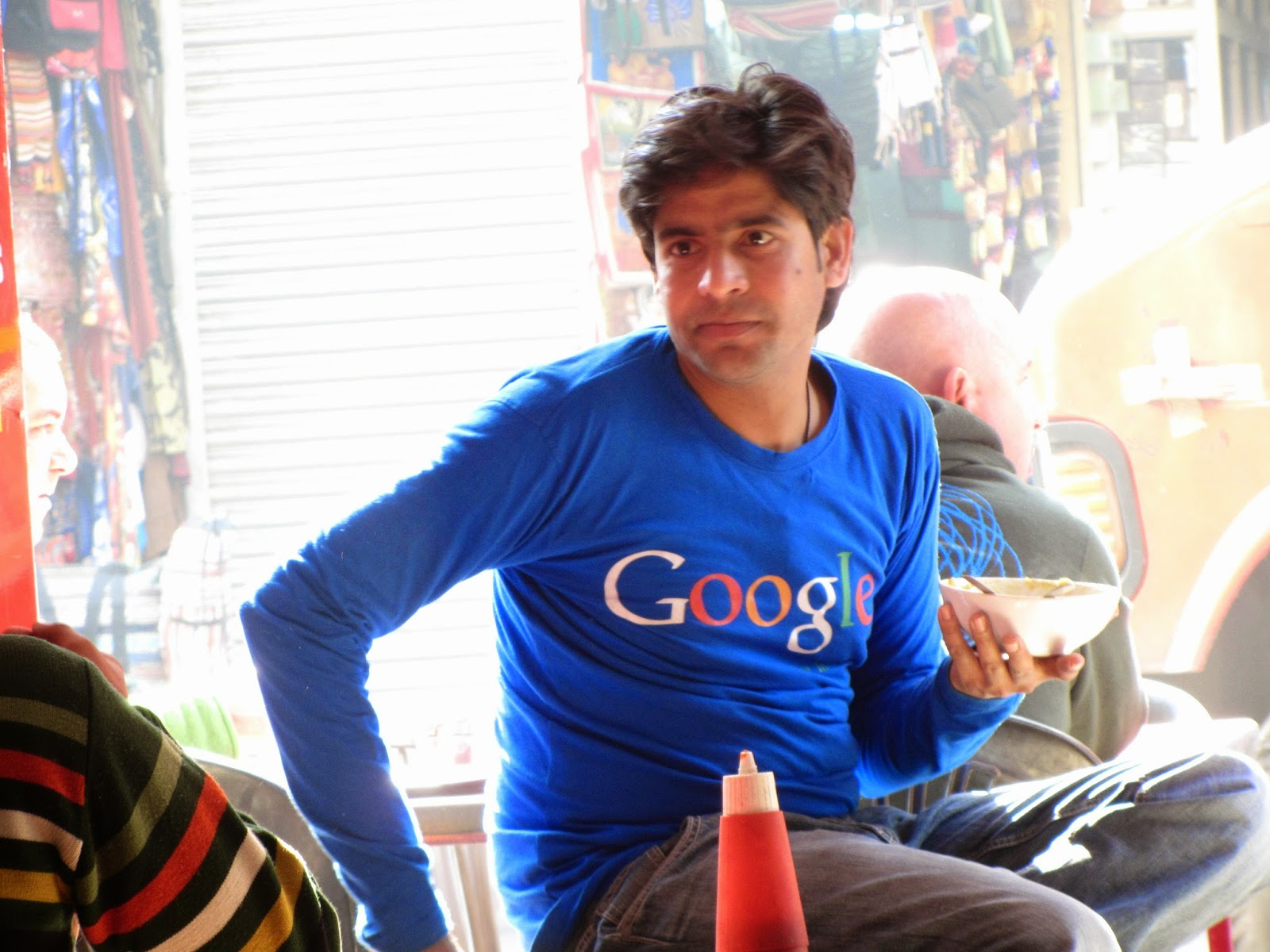 Wiedzieliśmy, że z metra mamy wziąć rikszę i cena za ten przejazd powinna nas wynieść 30 rupii. Rikszarz zaczął od ponad stu. W końcu biali. Ale, gdy zorientował się, że znamy lokalną stawkę i nie damy sobie w kaszę dmuchać, to przejechaliśmy znaczny odcinek w cenie normalnej taryfy. Na miejscu zaś spotkaliśmy się z Marcinem.